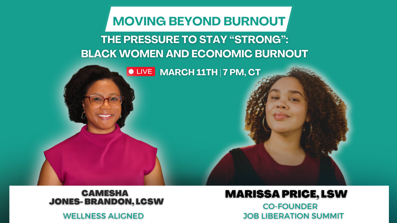 In this conversation for Moving Beyond Burnout with Marissa Price, LSW, Co-Founder of the Job Liberation Virtual Summit for Black women, we unpack how economic instability and pressure to perform are impacting Black women right now. We’ll break down what you can do to prepare and shift, while also tending to your well-being.